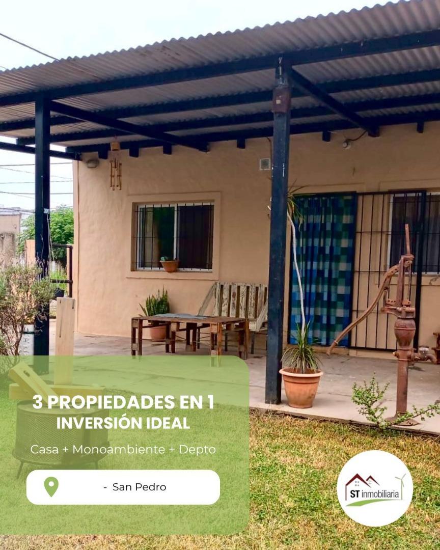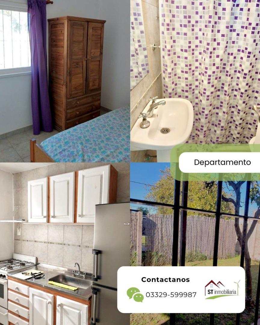 Casa 3: Departamento de 2 ambientes . Estar comedor con cocina integrada de 5,30 x 3,10 con salida a jardín. Dormitorio de 3,20 x 3,10. Baño completo de 1,90 x 1,40. Galería cubierta 5 x 2,10. Jardín de 11 x 4,60. Termotanque electrico